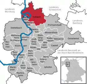 فولكاخ (بالألمانية: Volkach) هي place with town rights and privileges و بلدة ألمانية تقع في بافاريا في ألمانيا.[7]