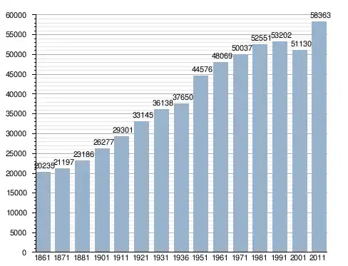 في سنة 1861 بلغ عدد السكان 20٬235 نسمة، وتطور العدد ليصل في سنة 2011 لـ 58٬363 نسمة.