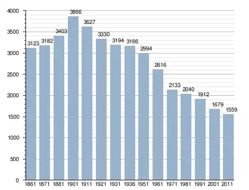 في سنة 1861 بلغ عدد السكان 3٬123 نسمة، وتطور العدد ليصل في سنة 2011 لـ 1٬559 نسمة.