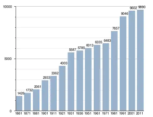 في سنة 1861 بلغ عدد السكان 1٬426 نسمة، وتطور العدد ليصل في سنة 2011 لـ 9٬690 نسمة.