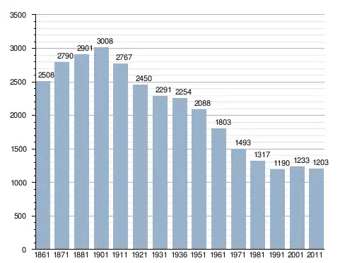 في سنة 1861 بلغ عدد السكان 2٬508 نسمة، وتطور العدد ليصل في سنة 2011 لـ 1٬203 نسمة.