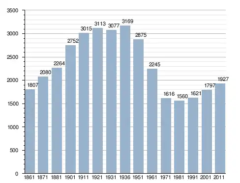 في سنة 1861 بلغ عدد السكان 1٬807 نسمة، وتطور العدد ليصل في سنة 2011 لـ 1٬927 نسمة.