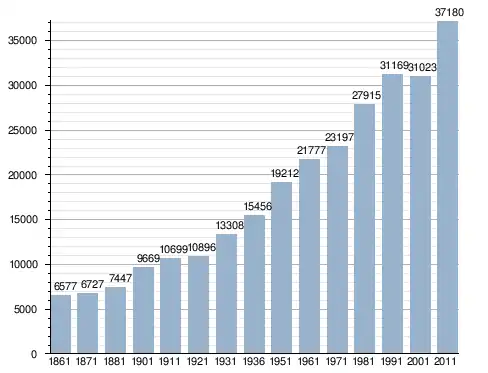 في سنة 1861 بلغ عدد السكان 6٬577 نسمة، وتطور العدد ليصل في سنة 2011 لـ 37٬180 نسمة.