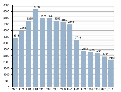 في سنة 1861 بلغ عدد السكان 3٬911 نسمة، وتطور العدد ليصل في سنة 2011 لـ 2٬139 نسمة.