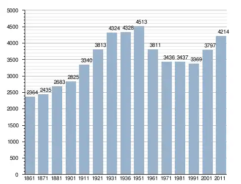 في سنة 1861 بلغ عدد السكان 2٬364 نسمة، وتطور العدد ليصل في سنة 2011 لـ 4٬214 نسمة.
