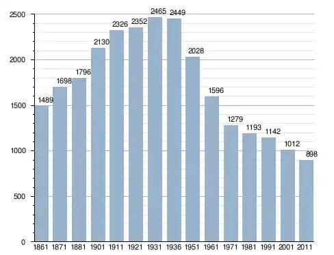 في سنة 1861 بلغ عدد السكان 1٬489 نسمة، وتطور العدد ليصل في سنة 2011 لـ 898 نسمة.