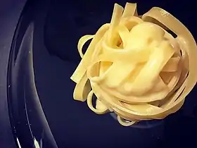 فيتوشيني ألفريدو ( النطق الإيطالي: [fettut'tʃiːne alˈfreːdo] [1] أو fettuccine al burro [2] هو طبق معكرونة إيطالي من فيتوتشيني مقلب بالزبدة وجبنة البارميزان ( (بالإيطالية: pasta al burro e parmigiano) بارميزانو)).[3][4][5] عندما يذوب الجبن، فإنه يستحلب السوائل لتشكيل صلصة ناعمة وغنية لطلاء المعكرونة. [3] تم تسمية الطبق باسم ألفريدو دي ليليو، الذي عرض الطبق في مطعمه في روما في أوائل القرن العشرين. كان "الحفل" لإعداده تابليسيدي جزءًا لا يتجزأ من الطبق. [3] [6]