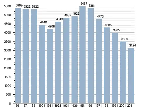 في سنة 1861 بلغ عدد السكان 5٬399 نسمة، وتطور العدد ليصل في سنة 2011 لـ 3٬124 نسمة.