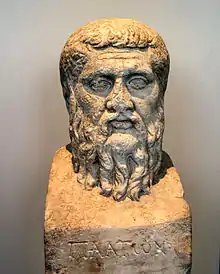 أكد افلاطون تكرارا ان الفنان محاك لا يعرف ما يحاكيه أو هو مدفوع من قوة لاعقلانية لا يعي معها ما يفعل أو يقول وبالتالي يثير في نفوس الناس اضطرابا لا يستقيم مع الحكمة والاتزان اللذان تنشدهما الفلسفة.