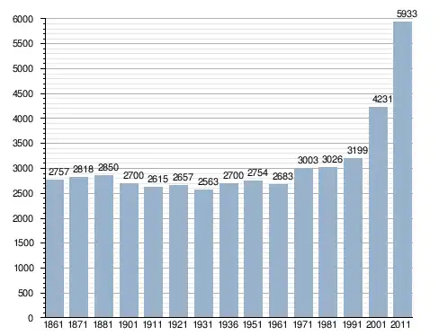 في سنة 1861 بلغ عدد السكان 2٬757 نسمة، وتطور العدد ليصل في سنة 2011 لـ 5٬933 نسمة.