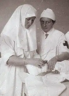 لم يكن من الآمن لها البقاء في بيتروغارد بعد ما حدث لتسار نيكولاس. فغيرت معلومات الولادة في جوازها وهي بعمر 44 سنة وعينت رئيسة أطباء لدى الفوج السيبيري السادي. ثم أرسلت للجبهة وخدمت الجرحى في معركة غاليسيا في شهري حزيران وتموز من عام 1917. بعد ذلك إنتقلت للفوج الخامس وعملت كجراحة بلقب فريق. وهو لقب يوازي ملازم أول في الجيش الامبراطوري الروسي. [16][22][23]