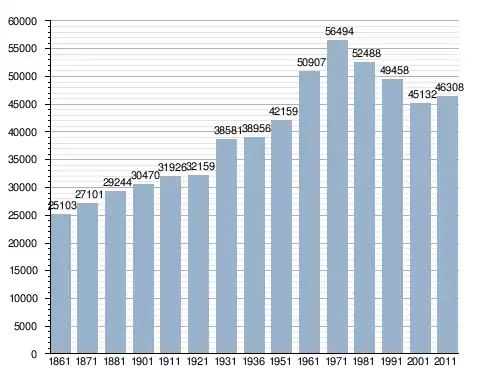 في سنة 1861 بلغ عدد السكان 25٬103 نسمة، وتطور العدد ليصل في سنة 2011 لـ 46٬308 نسمة.