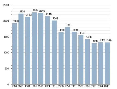 في سنة 1861 بلغ عدد السكان 1٬928 نسمة، وتطور العدد ليصل في سنة 2011 لـ 1٬319 نسمة.