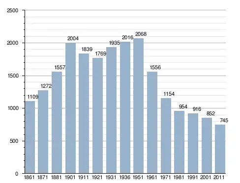 في سنة 1861 بلغ عدد السكان 1٬109 نسمة، وتطور العدد ليصل في سنة 2011 لـ 745 نسمة.