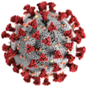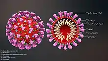 ![]() تمثيل لفريونات فيروس كورونا الجديد تمثيل لفريونات فيروس كورونا الجديد | |