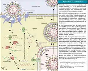 |CitationClass=تم تجاهله (مساعدة) - Weiss SR, Navas-Martin S (December 2005). "Coronavirus pathogenesis and the emerging pathogen severe acute respiratory syndrome coronavirus". Microbiology and Molecular Biology Reviews. 69 (4): 635–664. doi:10.1128/MMBR.69.4.635-664.2005. PMC 1306801. PMID 16339739. الوسيط