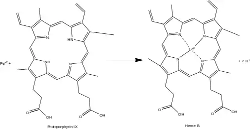 يحفِّز إنزيم فيروكيلاتاز الخطوةَ الثامنة والأخيرة من التخليق الحيوي لجزيء الهيم وذلك بتحويل بروتوبورفيرين 9 إلى هيم B، حيث يحدث تفاعل استخلاب مع أيونات الحديد الثنائي (الحديدوز):