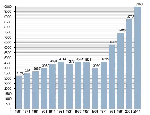في سنة 1861 بلغ عدد السكان 3٬176 نسمة، وتطور العدد ليصل في سنة 2011 لـ 9٬960 نسمة.