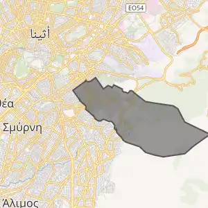 تحدها من الشمال بلدية قيصرياني، من الغرب أثينا وَ هيميتوس، من الجنوب إيليوبولي، ومن الشرق بلدية كوروبي.