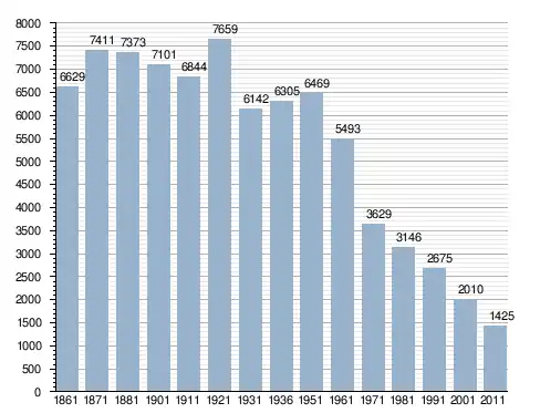 في سنة 1861 بلغ عدد السكان 6٬629 نسمة، وتطور العدد ليصل في سنة 2011 لـ 1٬425 نسمة.