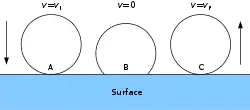 إذا وقعت كرة على سطح متحرك، يتم تعريف معامل الرد وفقا للمعادلة التالية:[23]