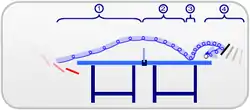 - إذا كانت الكرة تتحرك بسرعة أكبر بكثير مما كانت تدور به، فإن قوى الاحتكاك ستهيمن. يتم زيادة السرعة الزاوية للكرة بعد التصادم، لكن تنخفض سرعتها الأفقية. لن تتجاوز الكرة ارتفاعها الأصلي وستظل تدور في نفس الاتجاه.[31]