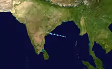 توقعت IMD أيضًا أن BOB 02 سيعيد تكثيفه في بحر العرب. [10] [11] تكثفت منطقة الضغط المنخفض في المنخفض ARB 03 في الساعات الأولى من يوم 17 أكتوبر. [12] أطال المنخفض موسم الرياح الموسمية الجنوبية الغربية بحوالي أسبوع. [13]