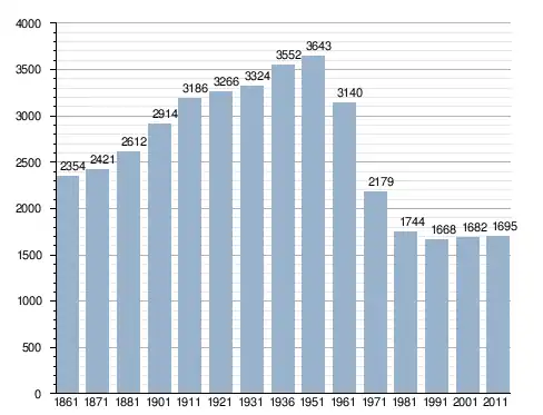 في سنة 1861 بلغ عدد السكان 2٬354 نسمة، وتطور العدد ليصل في سنة 2011 لـ 1٬695 نسمة.