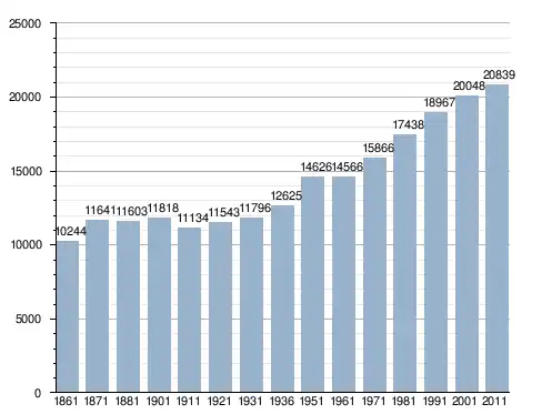 في سنة 1861 بلغ عدد السكان 10٬244 نسمة، وتطور العدد ليصل في سنة 2011 لـ 20٬839 نسمة.