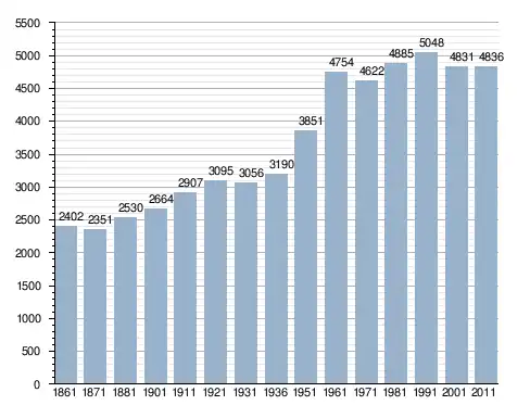 في سنة 1861 بلغ عدد السكان 2٬402 نسمة، وتطور العدد ليصل في سنة 2011 لـ 4٬836 نسمة.