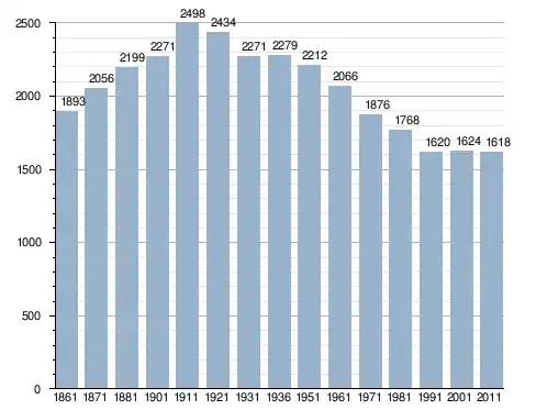 في سنة 1861 بلغ عدد السكان 1٬893 نسمة، وتطور العدد ليصل في سنة 2011 لـ 1٬618 نسمة.