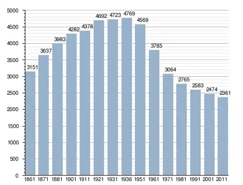 في سنة 1861 بلغ عدد السكان 3٬151 نسمة، وتطور العدد ليصل في سنة 2011 لـ 2٬361 نسمة.