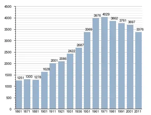 في سنة 1861 بلغ عدد السكان 1٬251 نسمة، وتطور العدد ليصل في سنة 2011 لـ 3٬376 نسمة.