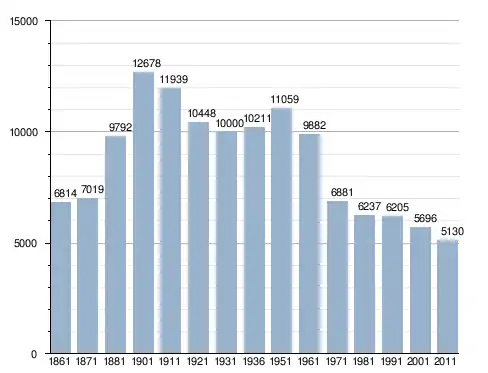 في سنة 1861 بلغ عدد السكان 6٬814 نسمة، وتطور العدد ليصل في سنة 2011 لـ 5٬130 نسمة.