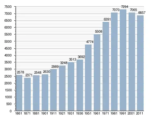 في سنة 1861 بلغ عدد السكان 2٬578 نسمة، وتطور العدد ليصل في سنة 2011 لـ 6٬857 نسمة.