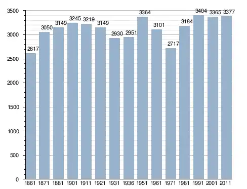في سنة 1861 بلغ عدد السكان 2٬617 نسمة، وتطور العدد ليصل في سنة 2011 لـ 3٬377 نسمة.