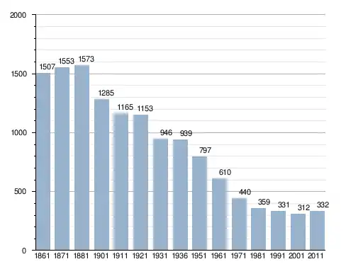 في سنة 1861 بلغ عدد السكان 1٬507 نسمة، وتطور العدد ليصل في سنة 2011 لـ 332 نسمة.