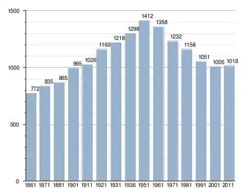 في سنة 1861 بلغ عدد السكان 772 نسمة، وتطور العدد ليصل في سنة 2011 لـ 1٬018 نسمة.