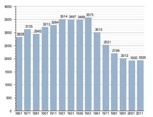 في سنة 1861 بلغ عدد السكان 2٬828 نسمة، وتطور العدد ليصل في سنة 2011 لـ 1٬936 نسمة.