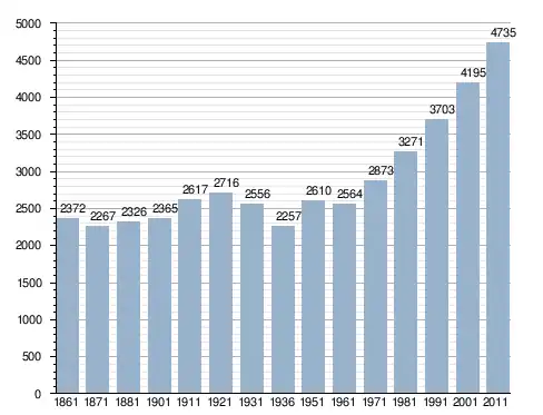 في سنة 1861 بلغ عدد السكان 2٬372 نسمة، وتطور العدد ليصل في سنة 2011 لـ 4٬735 نسمة.
