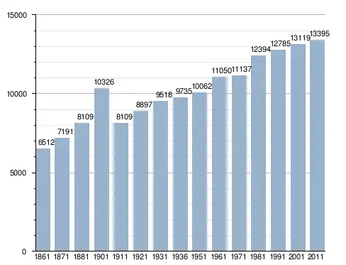في سنة 1861 بلغ عدد السكان 6٬512 نسمة، وتطور العدد ليصل في سنة 2011 لـ 13٬395 نسمة.