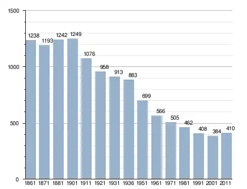 في سنة 1861 بلغ عدد السكان 1٬238 نسمة، وتطور العدد ليصل في سنة 2011 لـ 410 نسمة.