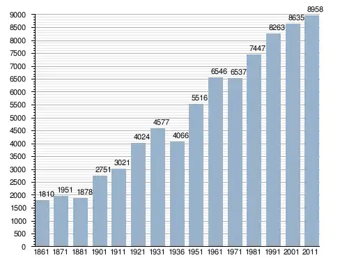في سنة 1861 بلغ عدد السكان 1٬810 نسمة، وتطور العدد ليصل في سنة 2011 لـ 8٬958 نسمة.