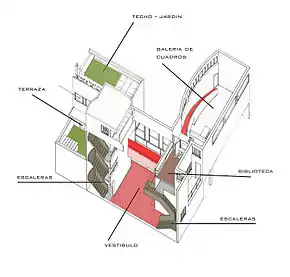 يُعتبر منزل لاروش-جانيريت، مبنى مزدوج لبيتين متصلان بشكل جزئي. وقد قام لوكوربوزييه في عام 1928 بتصميم أثاث البيت بالتعاون مع المصمم بيرياند. وقد كانت الفيلا ثمرة تعاونهم الأول. وقد استخدم لو كوربوزييه نمطا نحتيا تركيبيا في تصميم المنزل، حيث انعكس في هذا النمط التقسيمات المختلفة للغرف في تشكيل نحتي تركيبي يظهر فيه المبنى كمجموعة من الحجوم المتجاورة أو المتراكبة.[1]