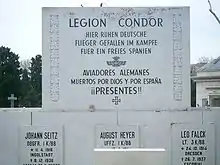 - Jesús María López de Uribe (22 مايو 2019). "Las fotos de los ochenta años de la despedida de la Legión Cóndor de León". مؤرشف من الأصل في 6 نوفمبر 2020. الوسيط