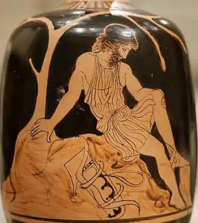 فيلوكتيتس[1] هو (أو والده، بوياس) قد ورث قوس وسهام البطل اليوناني هرقل مقابل إشعال محرقة جنازته؛ وهكذا أصبح فيلوكتيتس راميًا بارزًا.[2][3][4] في طريقه إلى طروادة أصيب بعجز بسبب لدغة الأفاعي، وتُرك في جزيرة ليمنوس. بعد أن كشف الرائي أنه لا يمكن أخذ طروادة إلا بمساعدة قوس وسهام هرقل، ذهب المحاربون اليونانيون أوديسيوس وإما ديوميديس أو نيوبتوليموس إلى فيلوكتيس وأقنعه بمرافقتهم إلى طروادة. هناك شُفي من جرحه وقتل باريس (ابن بريام، بريام ملك طروادة)، مما مهد الطريق لسقوط المدينة. عاد بعد ذلك إلى منزله لكنه تجول في وقت لاحق كمستعمر إلى جنوب إيطاليا، حيث توفي في النهاية في المعركة. استخدم الكاتب اليوناني القديم سوفوكليس موضوع هذه القصة في كتابه فيلوكتيتس.