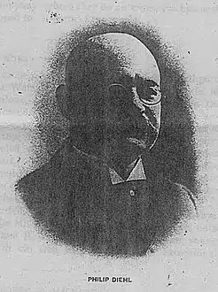 |CitationClass=تم تجاهله (مساعدة) - Diehl spelled and signed his first name 'Phillip' in his US patent 208838, awarded 8 October 1878