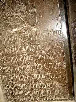 ![]() نسخة لشاهد قبر الملك إنغه الأصغر ترجع للقرن السادسة عشر في دير فيرتا، عليه بعض المعلومات غير الدقيقة، مع أنه على الأرجح قد وُضع بشكل صحيح وق عظامه وعظام الملك فيليب بالقرب من مذبح الكنيسة. | |||||||