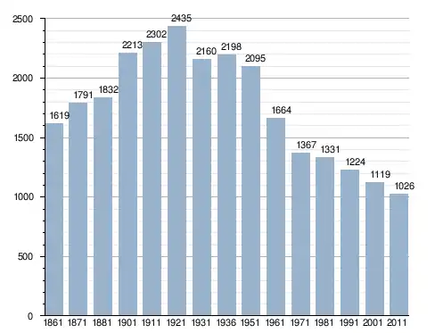 في سنة 1861 بلغ عدد السكان 1٬619 نسمة، وتطور العدد ليصل في سنة 2011 لـ 1٬026 نسمة.