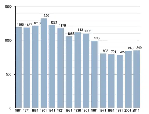 في سنة 1861 بلغ عدد السكان 1٬190 نسمة، وتطور العدد ليصل في سنة 2011 لـ 849 نسمة.